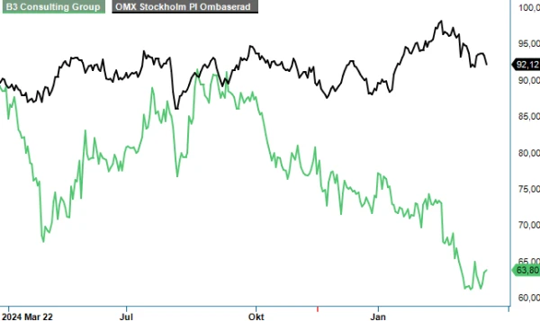 Det märks inte minst på kursutvecklingen i sektorn då B3 tappat närmare 14% sedan årsskiftet och 30% den senaste tolvmånadersperioden. Sektorkollegan KnowIT har haft en bättre utveckling med en kursuppgång på nästan 20% hittills i år.