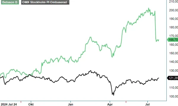 Aktiekursen berättar en annan historia och vi har svårt att sätta fingret på vad marknaden reagerade så starkt på i Q2-rapporten. Att vissa investerare väljer att realisera vinster i Betsson-aktien efter den starka kursutvecklingen i år väl mer eller mindre väntat, och resultaten motiverade säkert en nedgång om några procent, men nedgången blev betydligt mer omfattande än så.