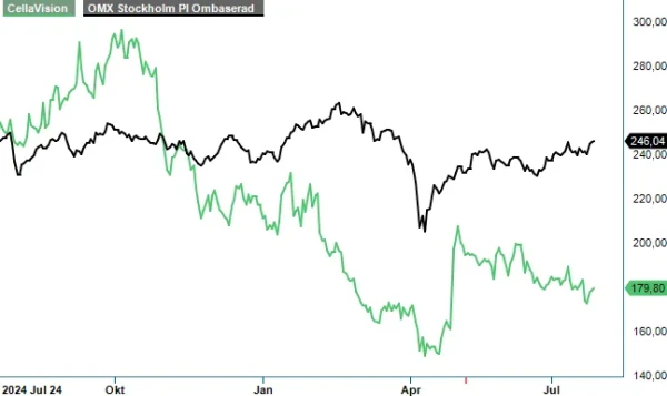 Kassaflödet från den löpande verksamheten var fortsatt starkt under årets två första kvartal och ökade till 119 Mkr (112). Vid utgången av juni uppgick likvida medel till 155 Mkr (122). Utöver det har CellaVision en outnyttjad checkräkningskredit på 30 Mkr (30). Den finansiella ställningen är därmed att betrakta som stark då räntebärande skuld i form av banklån begränsas till försumbara 5 Mkr. Det om något säkerställer stabil framtida utdelningsutveckling. I år höjdes den till 2,50 kr (2,25) och vi skulle inte bli överraskade om man höjer även nästa år till 2,75 kr beroende på hur vinsten på den nedersta raden utvecklas. Under det första halvåret har vinsten per aktie ökat till 3,32 Kr (2,88) även om det backade något i Q2 (1,58 kr vd 1,62 kr i Q2 2024).