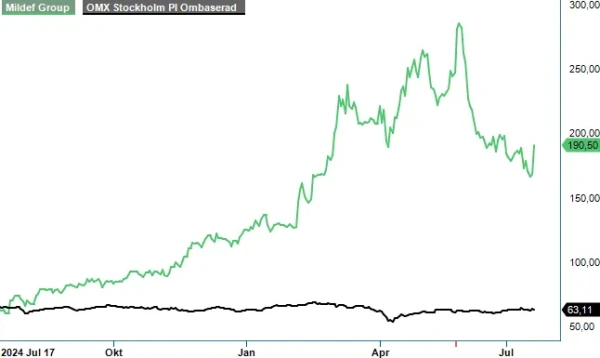 Att många insynspersoner säljer efter en kursrusning är förstås en sak. När det sker relativt nära inpå en vinstvarning är dock alltid uppseendeväckande och så blev ju fallet här. Mildef tvingades nämligen förra veckan meddela att såväl försäljningen som resultat kommer att skilja sig väsentligt från marknadsförväntningarna. Försäljningen i Q2 landade nämligen på 383 Mkr (302) vilket förvisso var 27% högre än ifjol men samtidigt klart lägre än 580 Mkr som marknadsestimat (FactSet) låg på vid tidpunkten för publicering. Den organiska var -36% (!). Rörelseresultatet (justerad EBITA) hamnade samtidigt på 25,1 Mkr (46,4) medan bruttomarginal blev 46% (51,1).