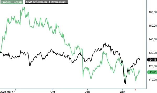 Efter Q1-rapporten har vi endast gjort mindre prognosrevideringar. På 2025 och 2026 års prognoser handlas aktien till EV/EBITA 9x respektive 8x, vilket är en rabatt på cirka 20% mot en del jämförelsebolag. Ser man till P/E-tal värderas Proact till 14x respektive 13x.
