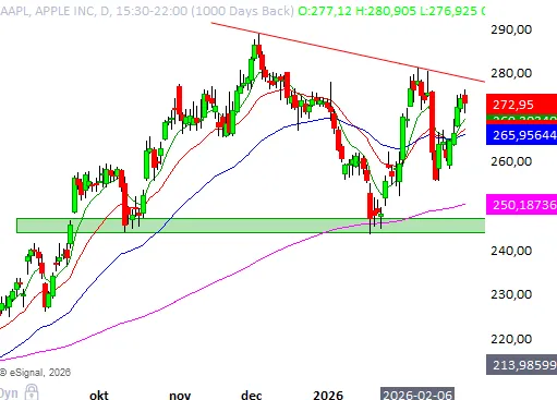 Apple inledde börsåret 2026 med en negativ tendens och i januari testades den långa grundtrenden. Precis som många gånger tidigare i andra aktier, blev reaktionen positiv efter en avstämning av 200 dagars medelvärde. Tendensen var också positiv efter rapporten, här finns troligen mer att hämta.
