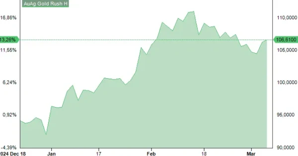 AuAg Gold Rush A är en aktivt förvaltad aktiefond som fokuserar på bolag inom guldsektorn. Fonden investerar i ett brett spektrum av guldrelaterade företag, framför allt inom prospektering, gruvdrift och guldproduktion. Fondens mål är att ge investerare möjlighet att utnyttja uppgångar på guldmarknaden och uppnå högre avkastning än vad en direkt investering i guld skulle ge. Fonden förvaltas sedan hösten 2023 av Eric Strand.