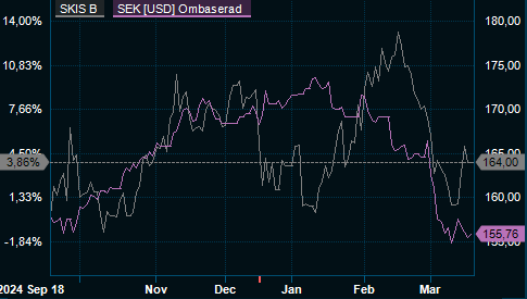 Nedgången de senaste veckorna kan, åtminstone delvis, förklaras med kronans förstärkning. En svag krona gör det billigt för utländska turister att semestra på SkiStars anläggningar, medan en starkare krona inte gör SkiStar lika konkurrenskraftig.