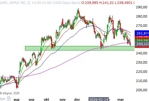 Under slutet av fjolåret och även under inledningen av 2025 gjorde köparna några försök att lyfta Apple mot 300 dollar men det fanns aldrig styrka för en uppgång dit. I stället har nu säljarna tagit över.