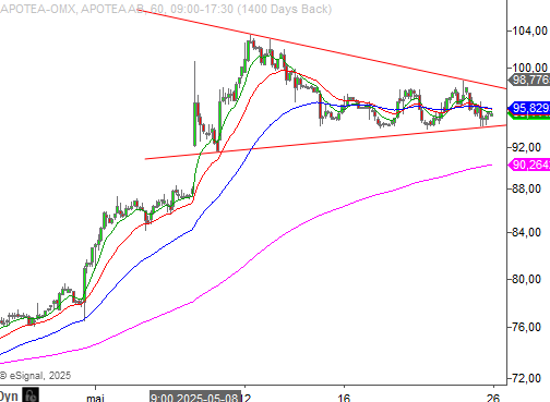 De senaste dagarna ser vi att Apotea konsoliderat och vår hypotes är att köparna inom kort kan komma att göra ett nytt försök att etablera aktien ovanför 100 kronor.