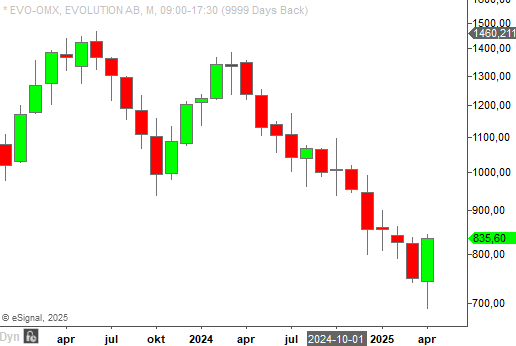 Vi har en grön månadsstapel och dessutom har Evolution faktiskt lyckats passera mars-månads högsta betalkurs.