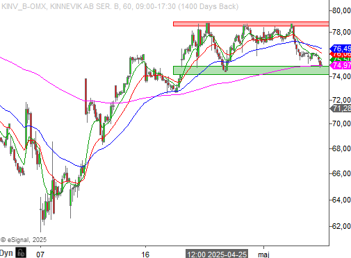 Motståndet i konsolideringsformationen finns i höjd med cirka 78,6 kronor. Tas detta ut, får vi signaler om att köparna är redo att visa engagemang igen.