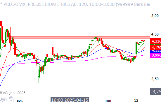 Senaste pivotbotten bildade Precise Biometrics vid cirka 3,81 - 3,83 kronor. Vid en negativ rapportreaktion är detta en viktig nivå att hålla under uppsikt.