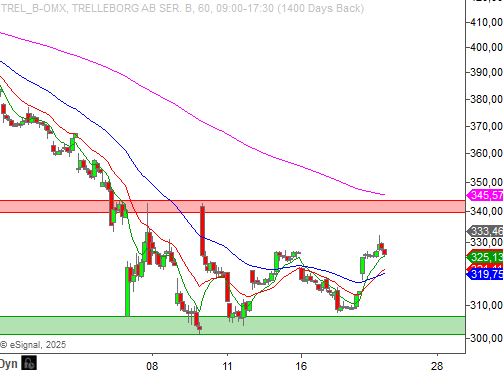 Här är det cirka 340 - 343 kronor man kan hålla ett öga på idag. Tas detta motstånd ut, finns förutsättningar för en större återhämtning mot 380 kronorsnivån.