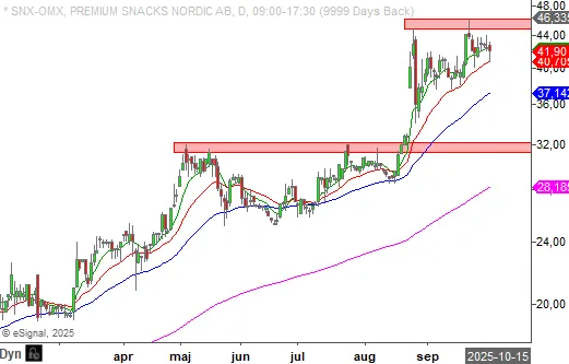 Premium Snacks har hört till börsens vinnare de två senaste åren och senast i augusti triggades en teknisk köpsignal. Nu laddar aktien för nästa trendrörelse.