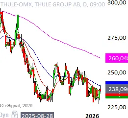 Vi kan också konstatera att trenden i Thule Group är fallande i samtliga tidsperspektiv, redan innan helgens nyheter var det alltså säljarna som höll övertaget. Mycket ska till innan vi har en långsiktig trendvändning i Thule Group.