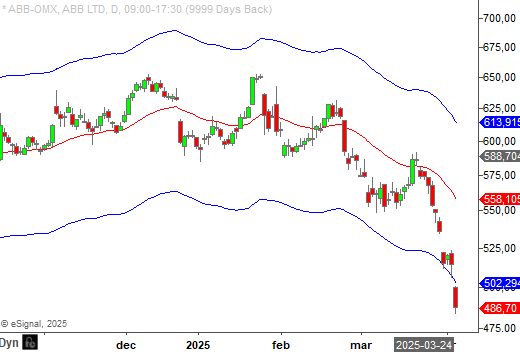 ABB tappade över 5 procent igår och aktien avslutade handelssessionen på 486,7 kronor. Vi har fått se aktörer fullkomligt vräka ut aktien de senaste veckorna, då aktien fallit från cirka 590 till 486,7 kronor.
