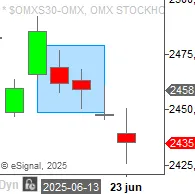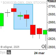 Definition: En "1:a" är en inside bar, alltså en kursstapel som är helt inom föregående stapels högsta och lägsta. Aktien handlas i ett snävt intervall utan riktning. Volatiliteten är låg och flödet avtar tillfälligt.